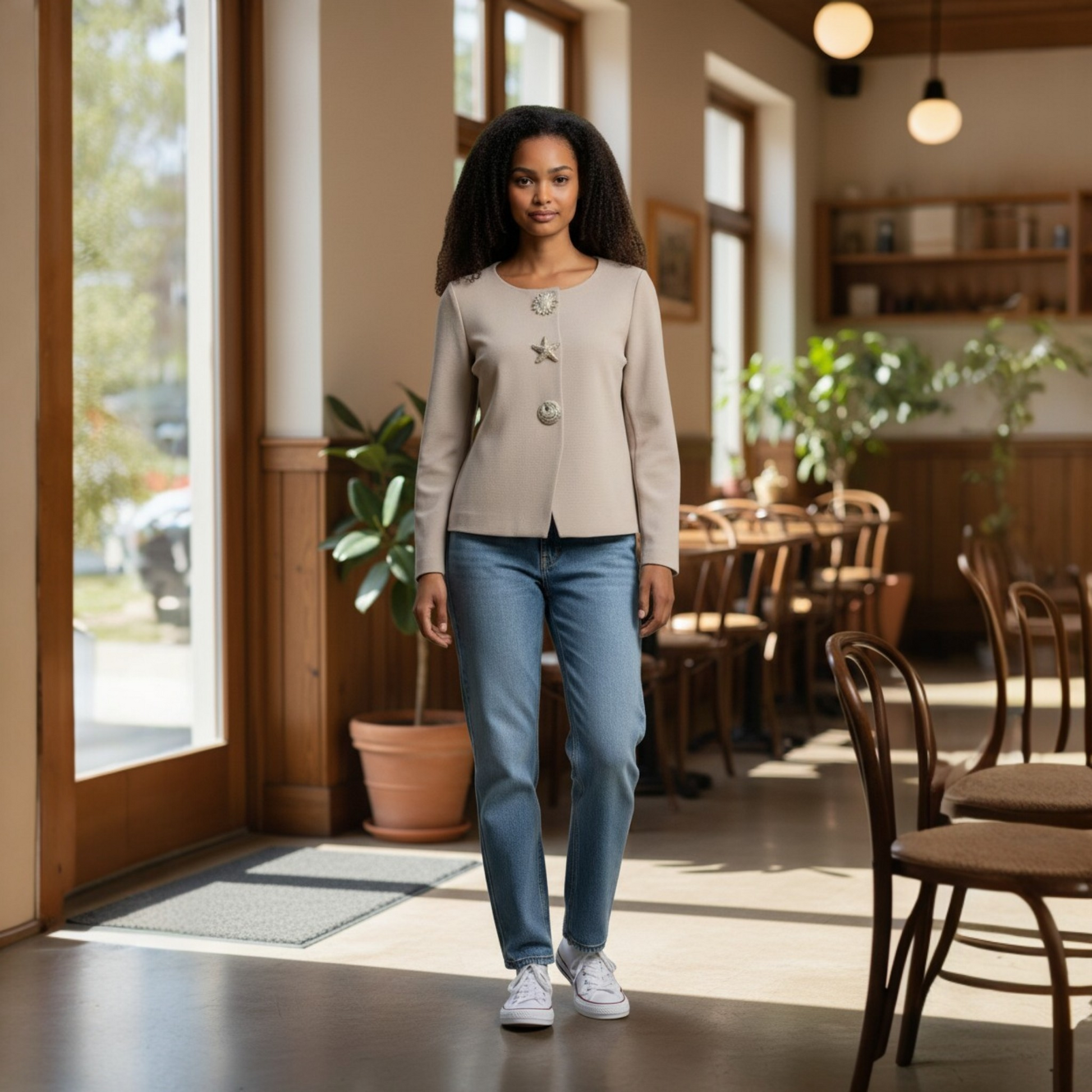 Ce superbe cardigan incarne parfaitement l'art de la mode française avec son style raffiné et sa coupe impeccable. Conçu pour la femme moderne qui apprécie le confort sans compromis sur l'élégance.